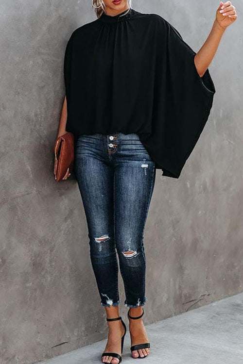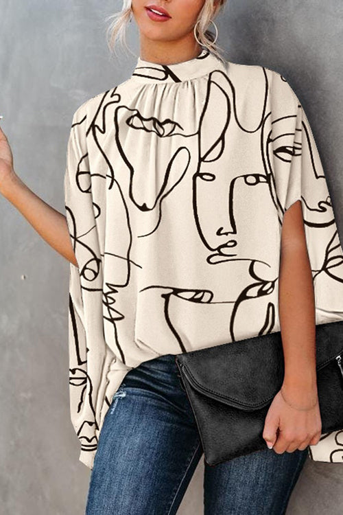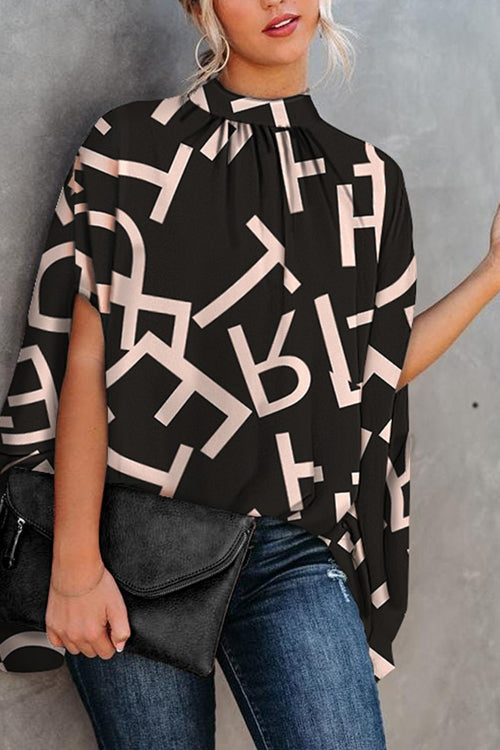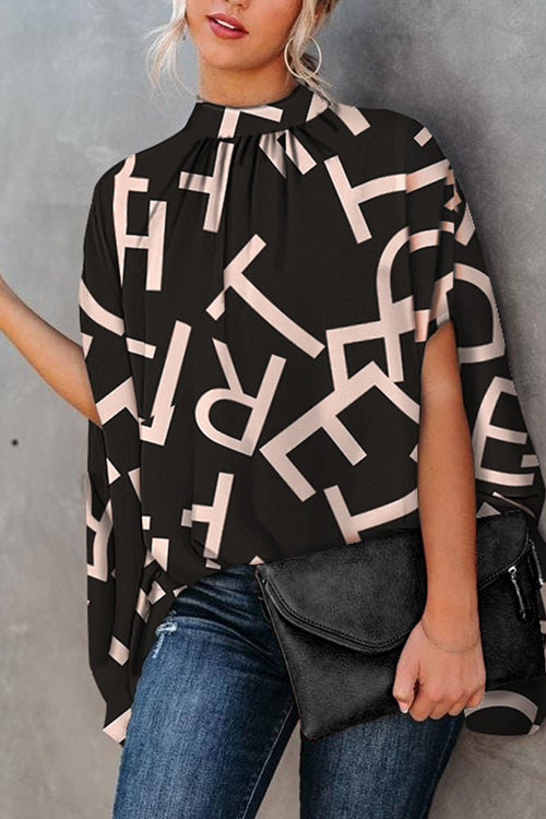 Lilliagirl Casual Loose Printed Bat Sleeve T-Shirt