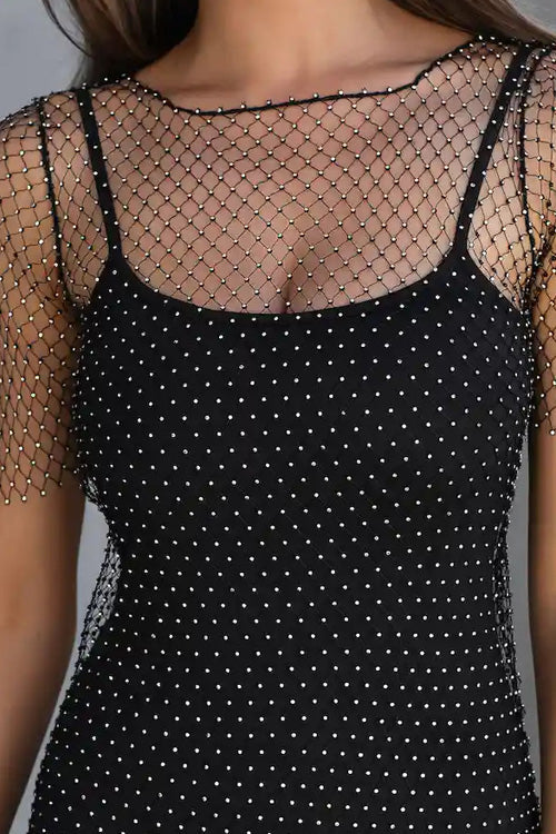 Lilliagirl Chic Mesh Short Sleeve Slim Party Dress