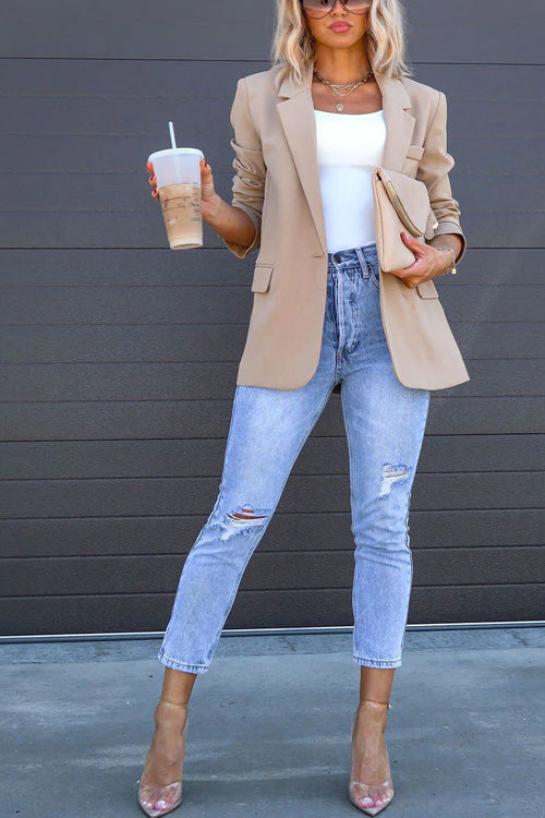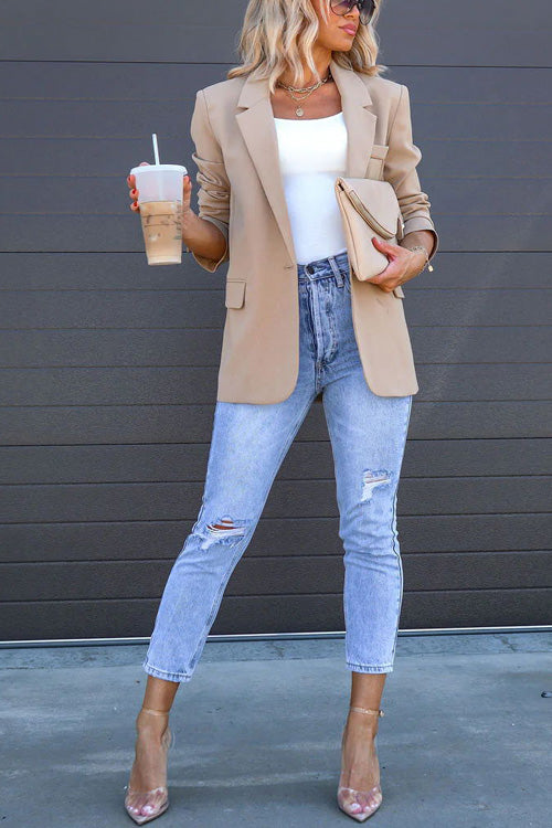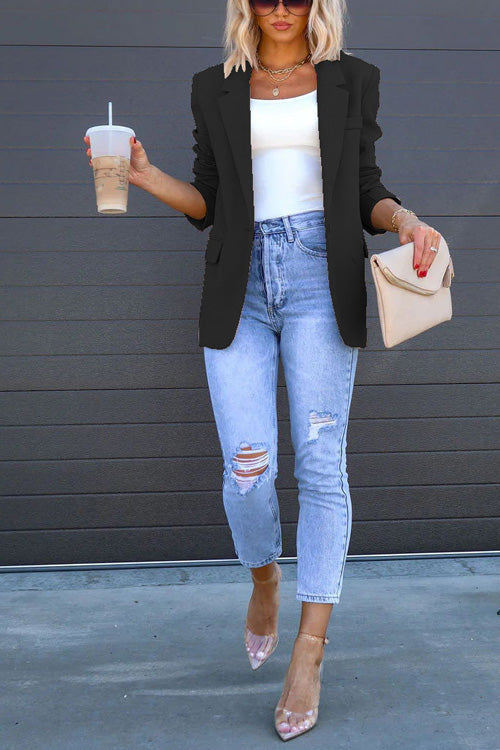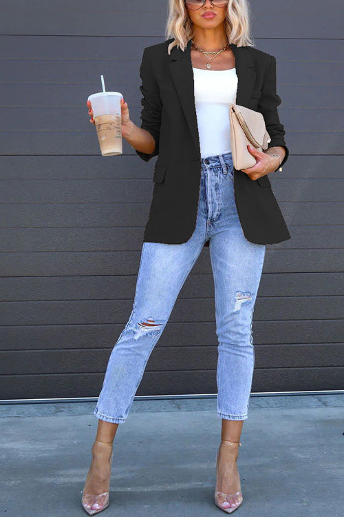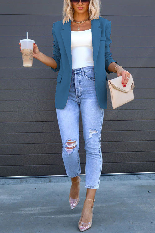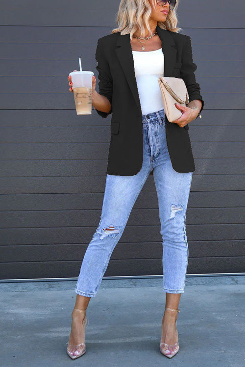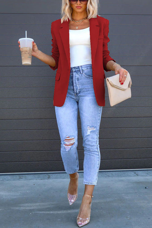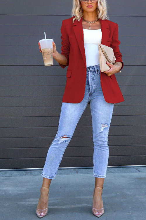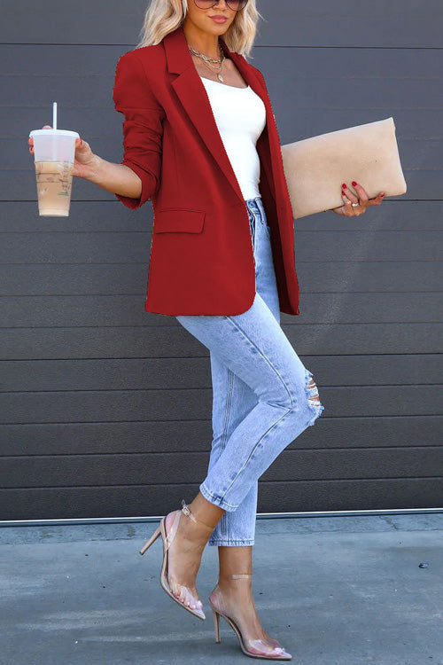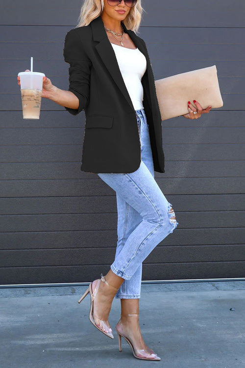 Lilliagirl Fashion Chic Solid Lapel Long Sleeve Slim Suit Coat