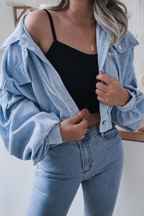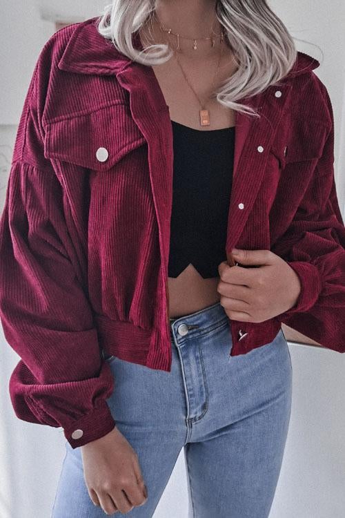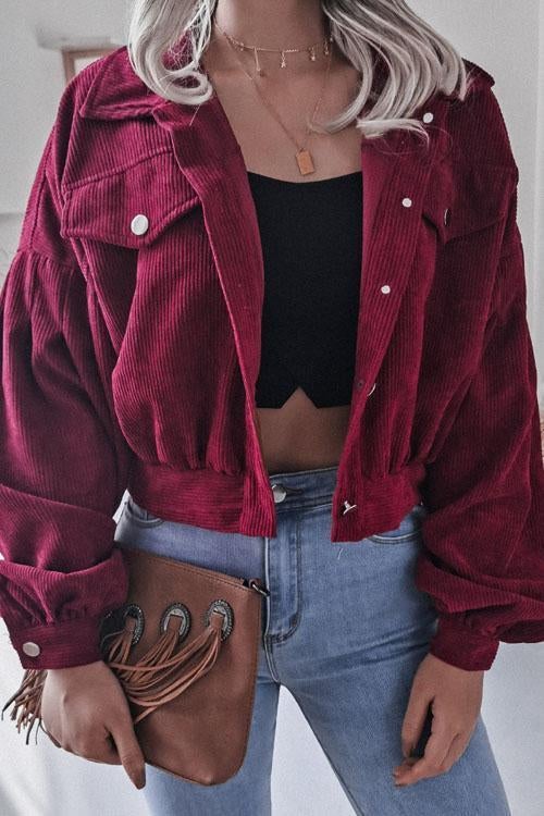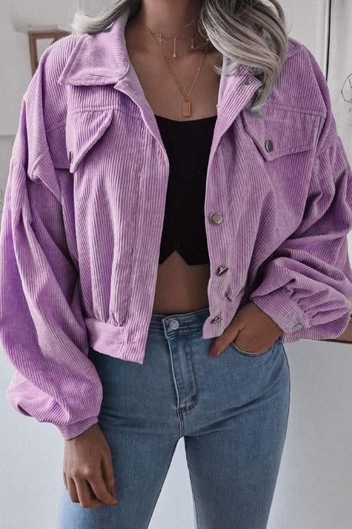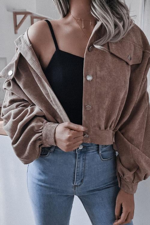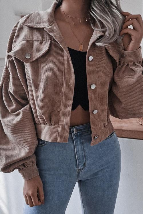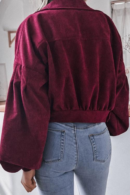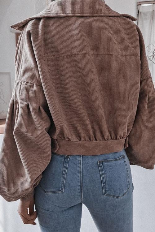 Lilliagirl Lantern Sleeve Corduroy Casual Jacket