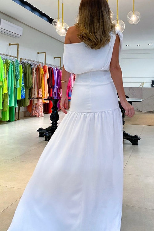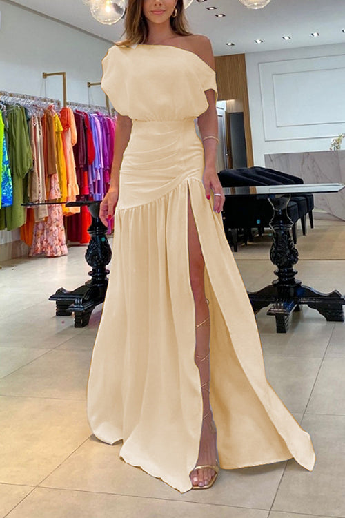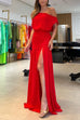 Rowanggirl Off-The-Shoulder Waist Slit Floor-Length Gown Dress